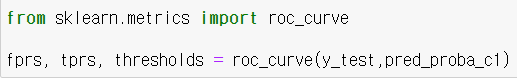 return은 fpr, tpr, threshold값을 반환하므로 세 개의 변수를 이용해 받아야 한다.
