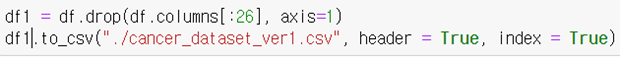 26번 column까지가 날짜 column이므로 제거하였다. 전처리가 완료된 데이터셋을 csv파일로 저장하였다.