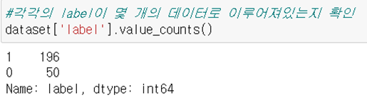 레이블 당 데이터의 개수를 확인해 보았다. 환자 데이터 196개, 일반인 데이터 50개이다. 레이블 당 데이터의 개수 차이가 크게 나는 것을 확인할 수 있다. 이럴 경우 데이터가 많은 레이블로 예측할 확률이 높아지기 때문에 오버 샘플링을 필수적으로 수행해야 한다.