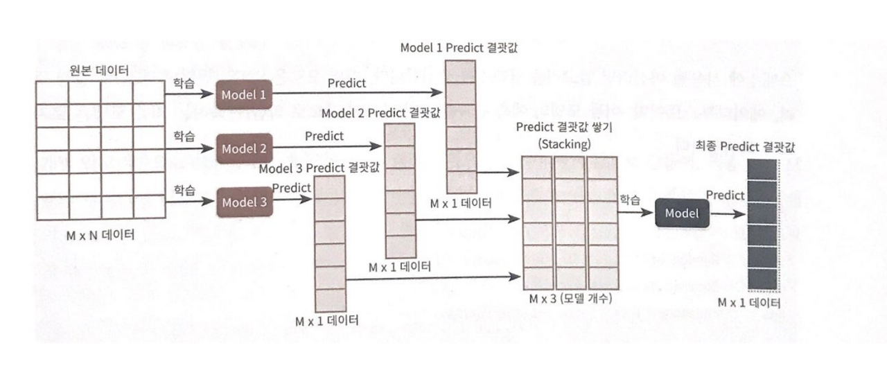 개별 알고리즘으로 예측한 데이터를 기반으로 다시 예측을 수행한다
