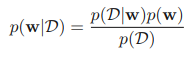 위의 식은 https://mldiary.tistory.com/39 에서 간단하게 소개했다. 여기서 p(w|D)는 사후 확률, p(D|w)는 가능도, p(w)는 사전 확률이 된다. 우리가 어떤 사건에 대해 가지고 있는 사전 확률(사전 지식)을 p(w)라고 할 때 새로운 증거 D가 발견되었다고 하자. 그럼 우리는 사전 확률을 바탕으로 해당 증거가 얼마나 타당한 증거인지 계산하고 이를 통해 사후 확률 p(w|D)를 계산해 낸다.