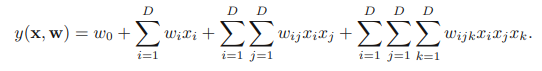 여기 하나 더 예시가 있다. 다항식 곡선 피팅 문제를 하나의 변수가 아닌 D개의 변수가 있다고 가정 하자.