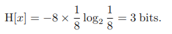 엔트로피를 바탕으로 8개의 값을 같은 확률로 가지는 변수를 전송한다고 하자. 이 변수의 값 x에 대해 수신자에게 전달하기 위해 3비트 길이의 메시지를 전송해야 할 것이다.