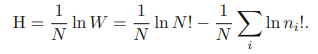 비율 ni/N을 그대로 유지시킨 상태에서 N ->∞을 취하고 여기에 스털링 근사식을 적용해 보자.