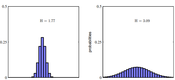 엔트로피에 따른 확률 분포를 다음과 같은 그림으로 나타낼 수 있다.