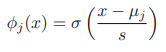 또다른 기저 함수의 예시로써 이는 시그모이드 기저 함수라고 일컫는다. 여기서 σ()는 다음과 같이 정의되는 로지스틱 시그모이드 함수이다.