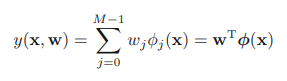 여기서 φj (x)가 기저 함수(basis function)이다. 이 모델의 배개변수의 총 숫자는 M-1 + 1(w0) = M이 된다.