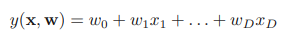 매개변수 w0은 데이터에 있는 편향을 표현할 수 있게 해준다. 따라서 편향 매개변수라고 부르기도 한다. 편의를 위해 w0의 기저함수를 1이라고 가정하면 다음과 같이 축약할 수 있다.