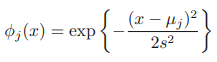 여기서 µj는 입력 공간에서의 기저 함수의 위치를 결정하고, 매개변수 s는 공간적 크기를 결정한다.이는 가우시안 기저 함수라고 불리지만 확률적으로 해석해야 하는 것은 아니며, 특히 정규화 계수가 중요하지 않은데, 이는 어차피 매개변수 w가 피팅되어 곱해질 것이기 때문이다.