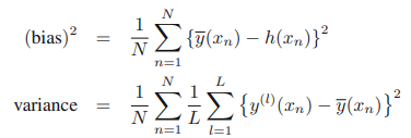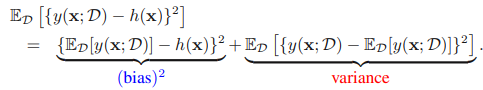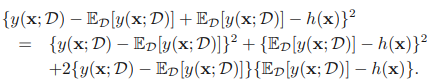 y(x;D)와 회귀 함수 h(x)간의 기대 제곱 차가 제곱 편향과 분산으로 나타나는 것을 확인할 수 있다.