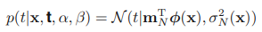 여기서 예측 분포의 분산은 다음과 같이 주어진다.