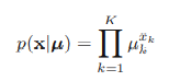 노드들이 이산 변수인 경우에 대해 살펴보자. K개의 상태를 가질 수 있는 단일 이산 변수 x(원-핫 인코딩)의 확률 분포 p(x|µ)를 다음과 같이 표현할 수 있다. 그리고 이 확률 분포는 매개변수 µ = (µ1, ... , µK)T에 의해 조절된다. 또한 µ 의 모든 원소를 합하면 1이므로 K-1개의 µk값만 설정하면 된다. 이번에는 변수를 한 개 더 늘려보자. K개의 상태를 가지는 두 개의 이산 변수 x1, x2를 고려해 보자. 그리고 이들의 결합 분포를 모델링한다고 하자. x1k = 1과 x2l = 1를 둘 다 관측할 확률을 µkl이라고 하자. 여기서 x1k는 x1의 k번째 성분, x2l은 x2의 l번째 성분을 의미한다. µkl이 제약 조건 으로 다음을 가진다. 따라서 이 분포는 K^2-1개의 매개..